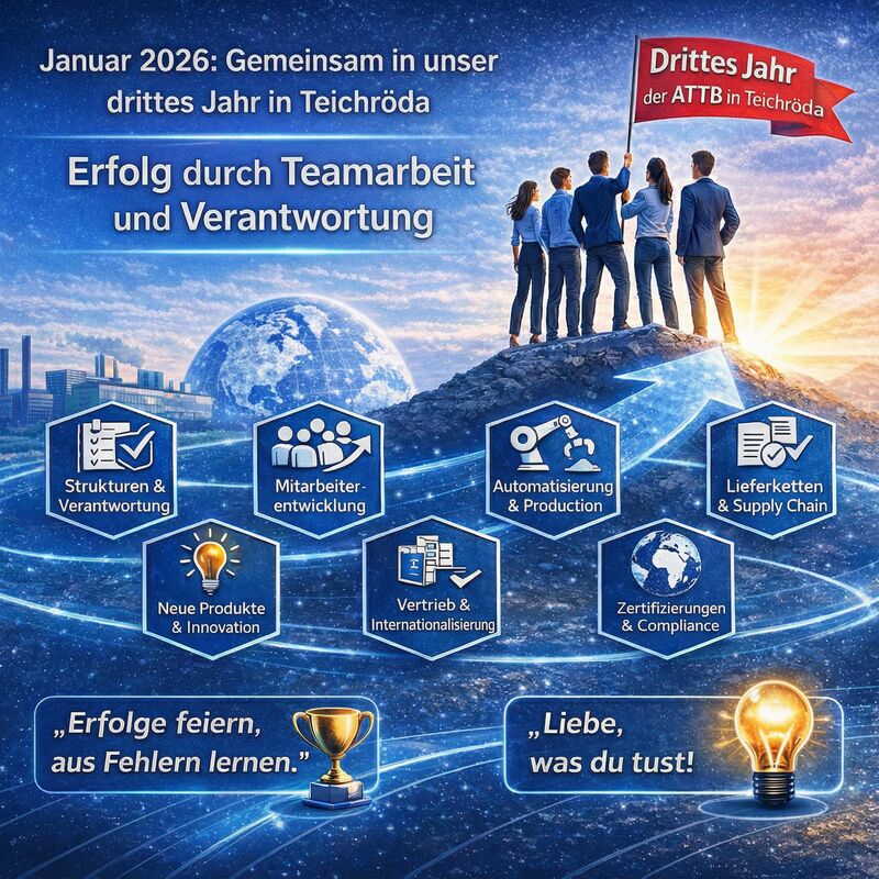 January 2026 marks a special milestone for ATTB: we are celebrating our third year in Rudolstadt. The last two years have been characterized by teamwork, commitment, and remarkable successes—a development that was only possible thanks to a strong team.